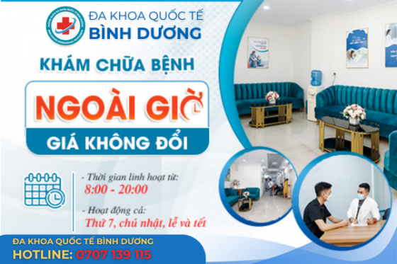 ➢ Thấu hiểu được tình trạng "đau vì bệnh, thêm mệt vì chờ" của bệnh nhân, Phòng Khám Đa khoa Quốc Tế Bình Dương còn thực hiện khám chữa bệnh ngoài giờ để người bệnh có thể thuận tiện lựa chọn thời gian khám phù hợp.